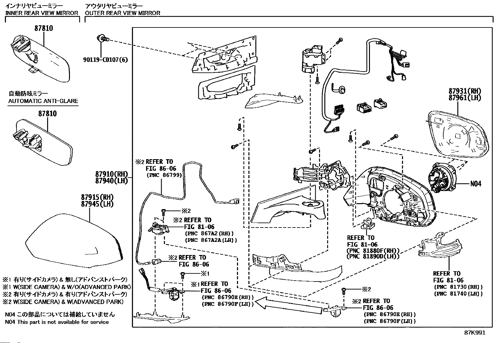 【87810】87810F4050 Mirror assy, inside