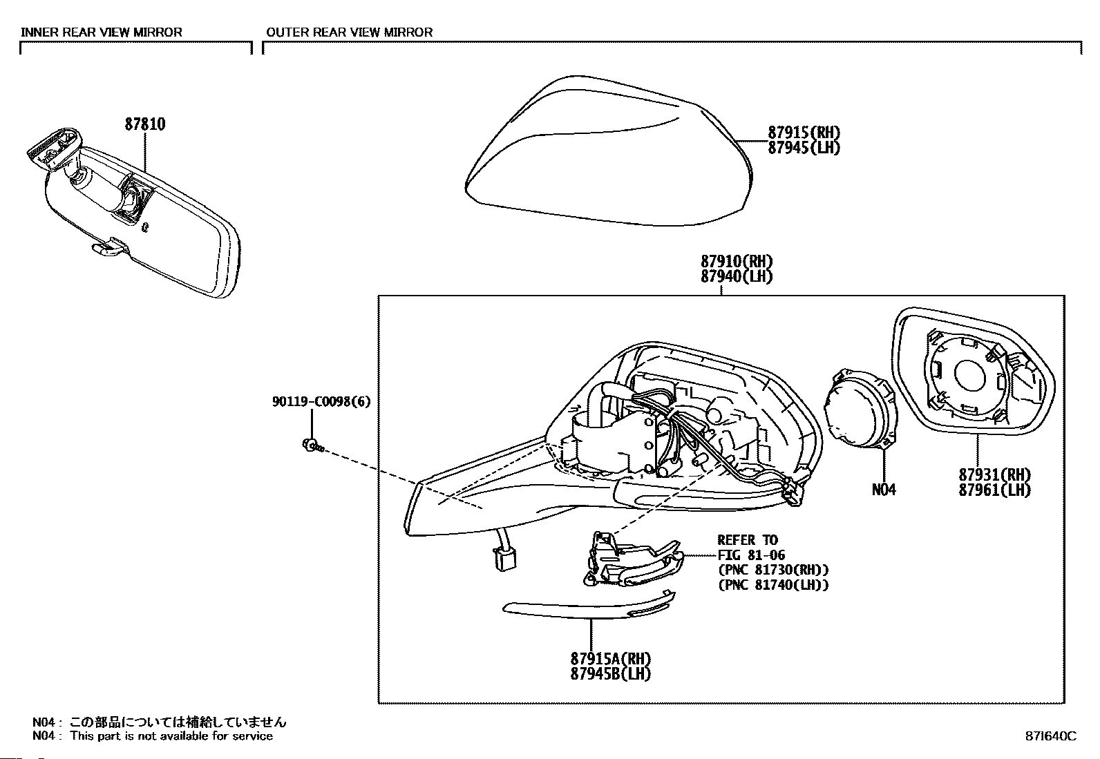 【87961】87961F4140 MIRROR OUTER, LH