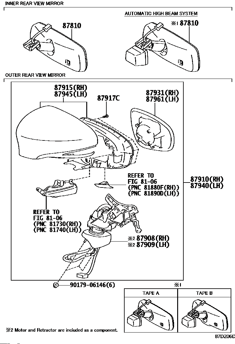 【87908】8790850711C0 ACTUATOR ASSY, OUTER MIRROR, RH/LH
