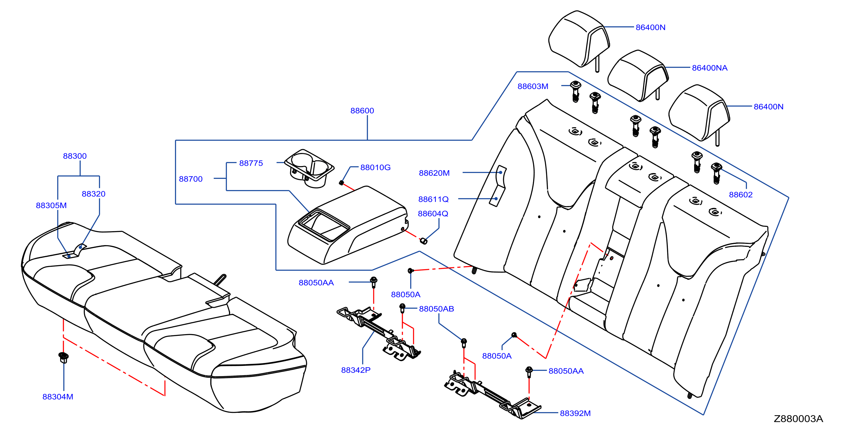 【88300】883002GR0A Cushion assy-rr seat