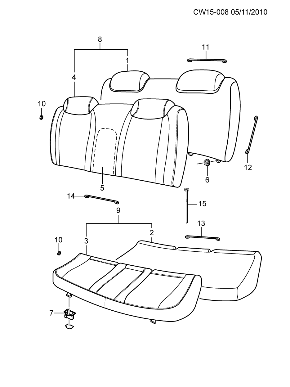 【007】16809855 Retainer (black), rear cushion