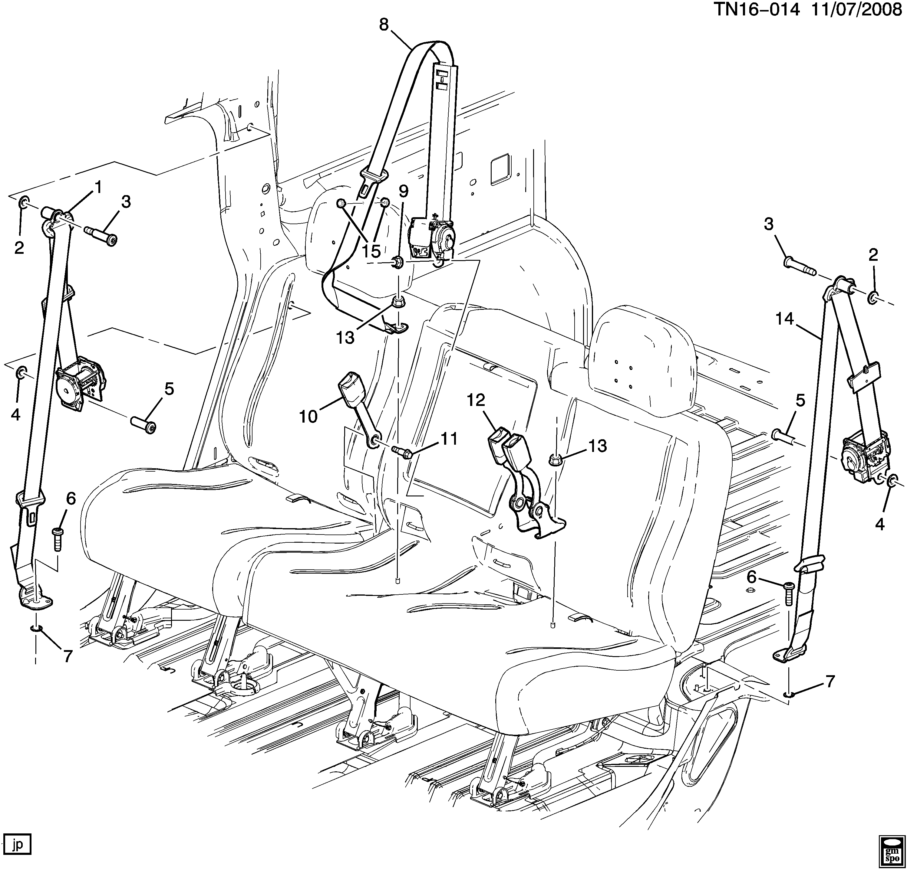 【10】89023186 BELT KIT,R/SEAT CTR(BKL SI)(EBONY)(SINGLE BKL)