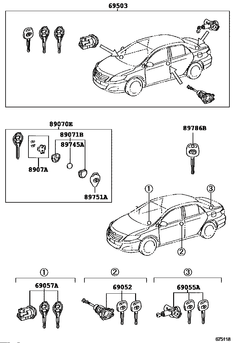 【69052】6905202130 CYLINDER & KEY SET, DOOR LOCK, LH