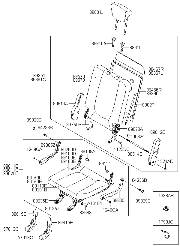 【89235E】892351D000 BASE ASSY-3RD CUSU INR,RH