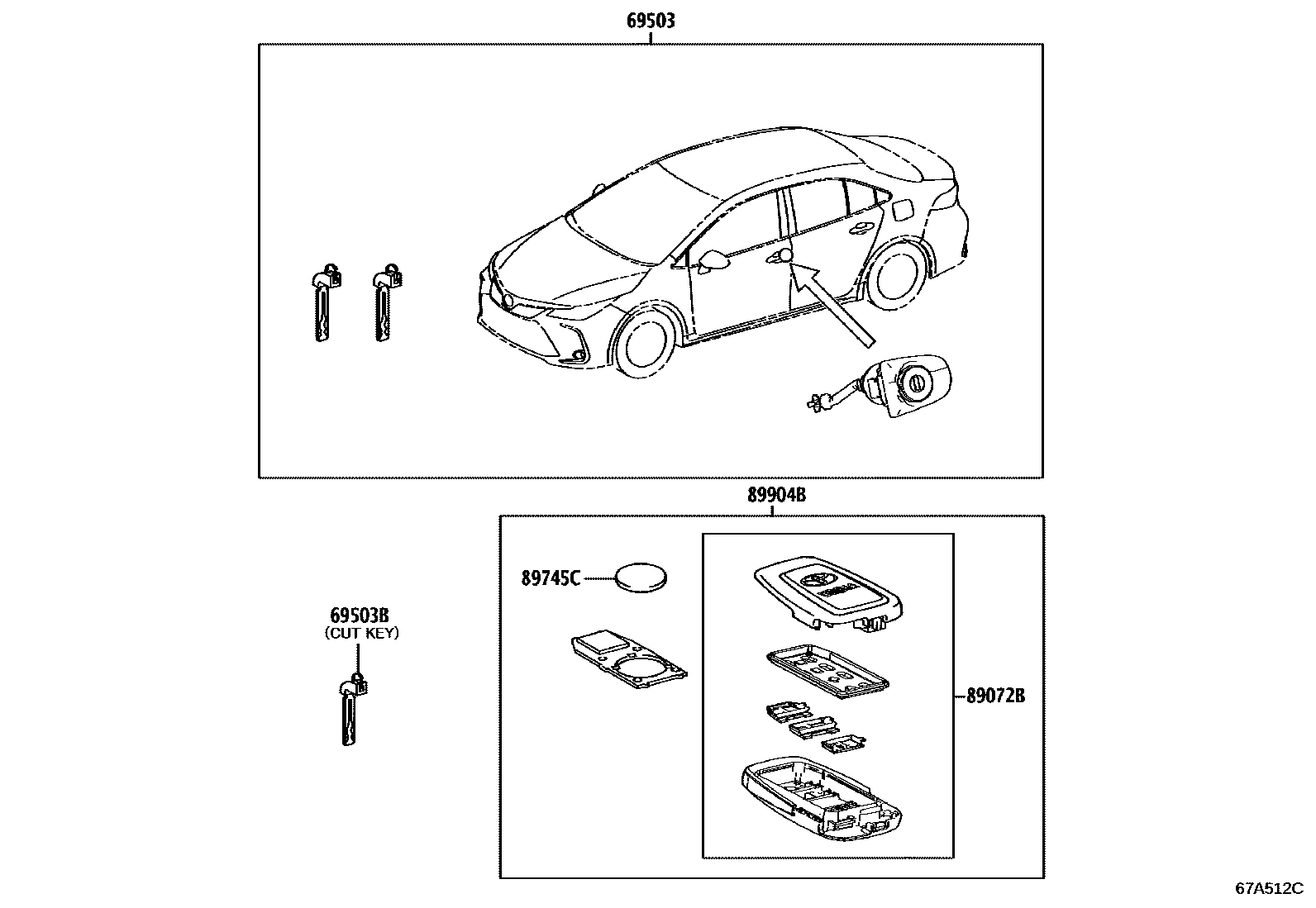 【89072B】8907202850 Case comp, remote key (for smart key)