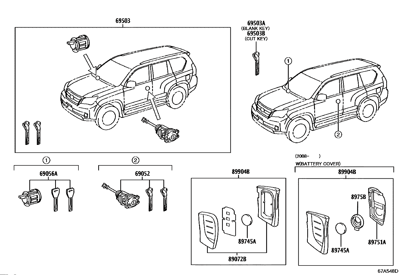 【69056A】6905650160 Cylinder & key set-glove box lock