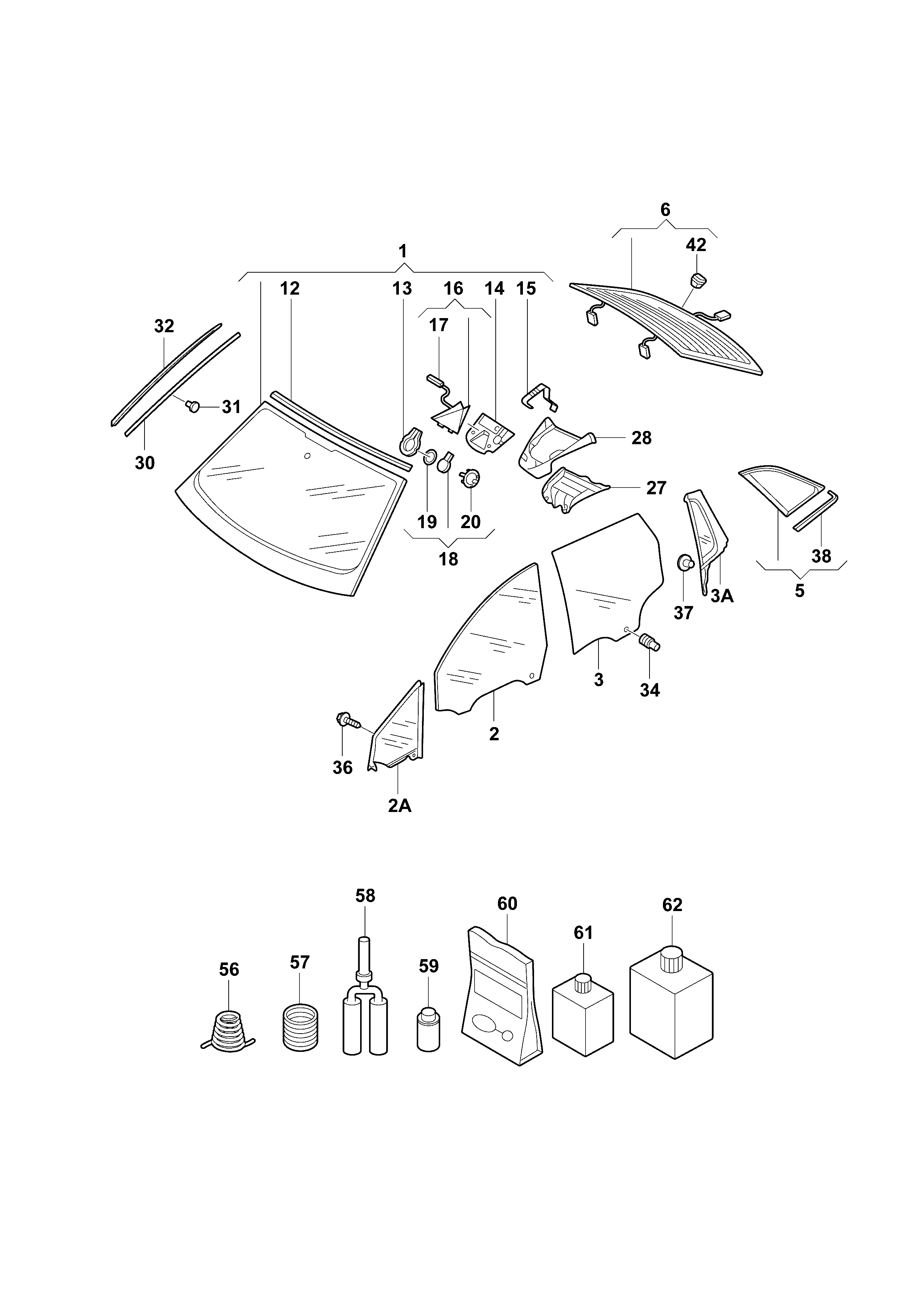 【2A】89D845113 Glass, fixed door w/weatherstrip & window guide