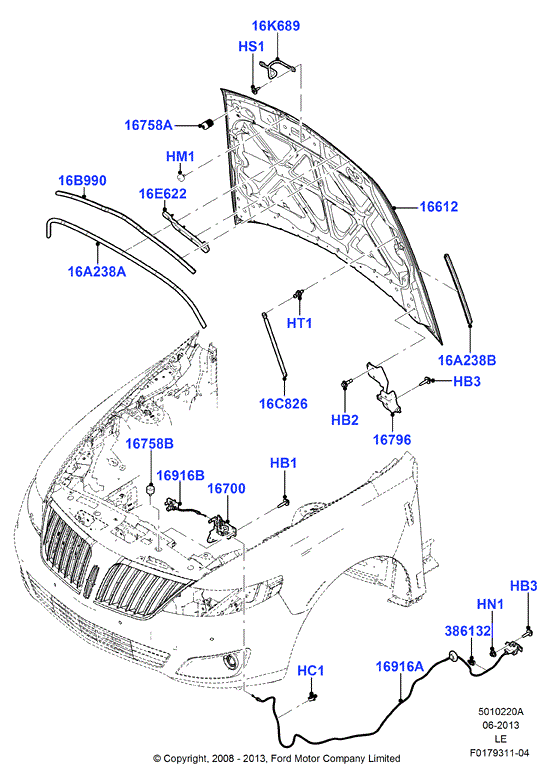 【16916B】AA5Z16916B CABLE ASSY - HOOD CONTROL