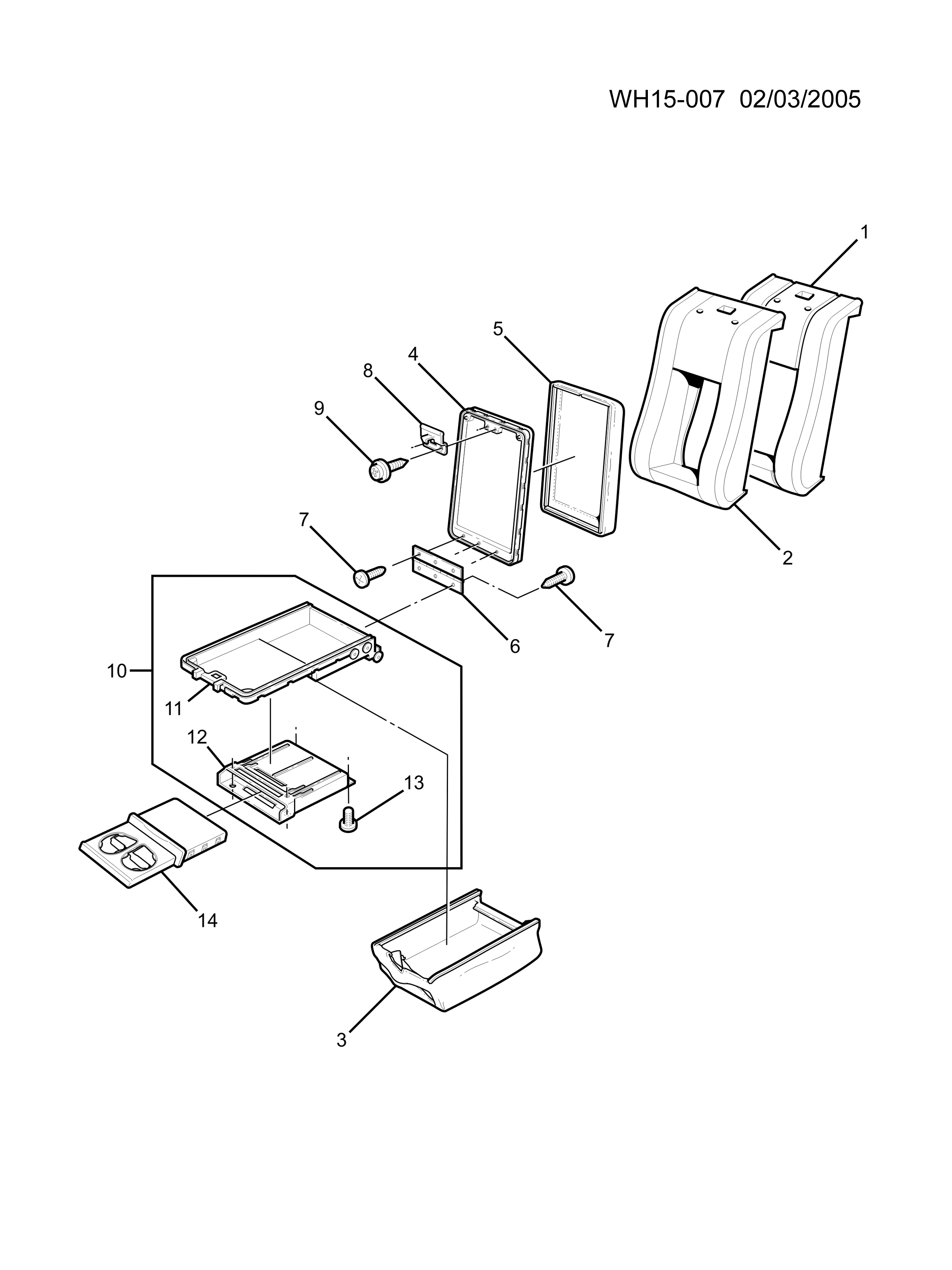 Armrest, rear seat (including 11,12, 13)