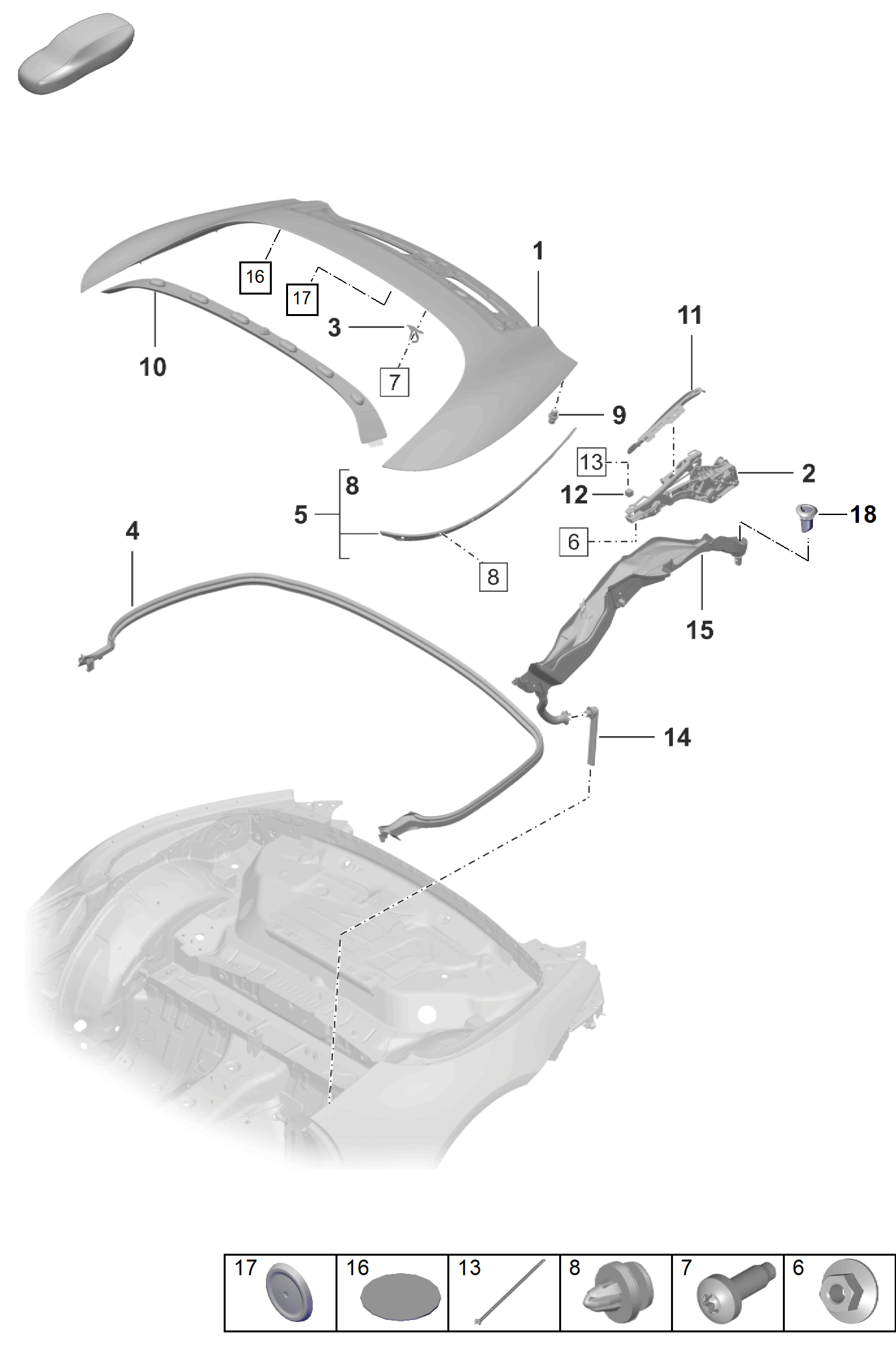 Lid, folding roof recl (primed)