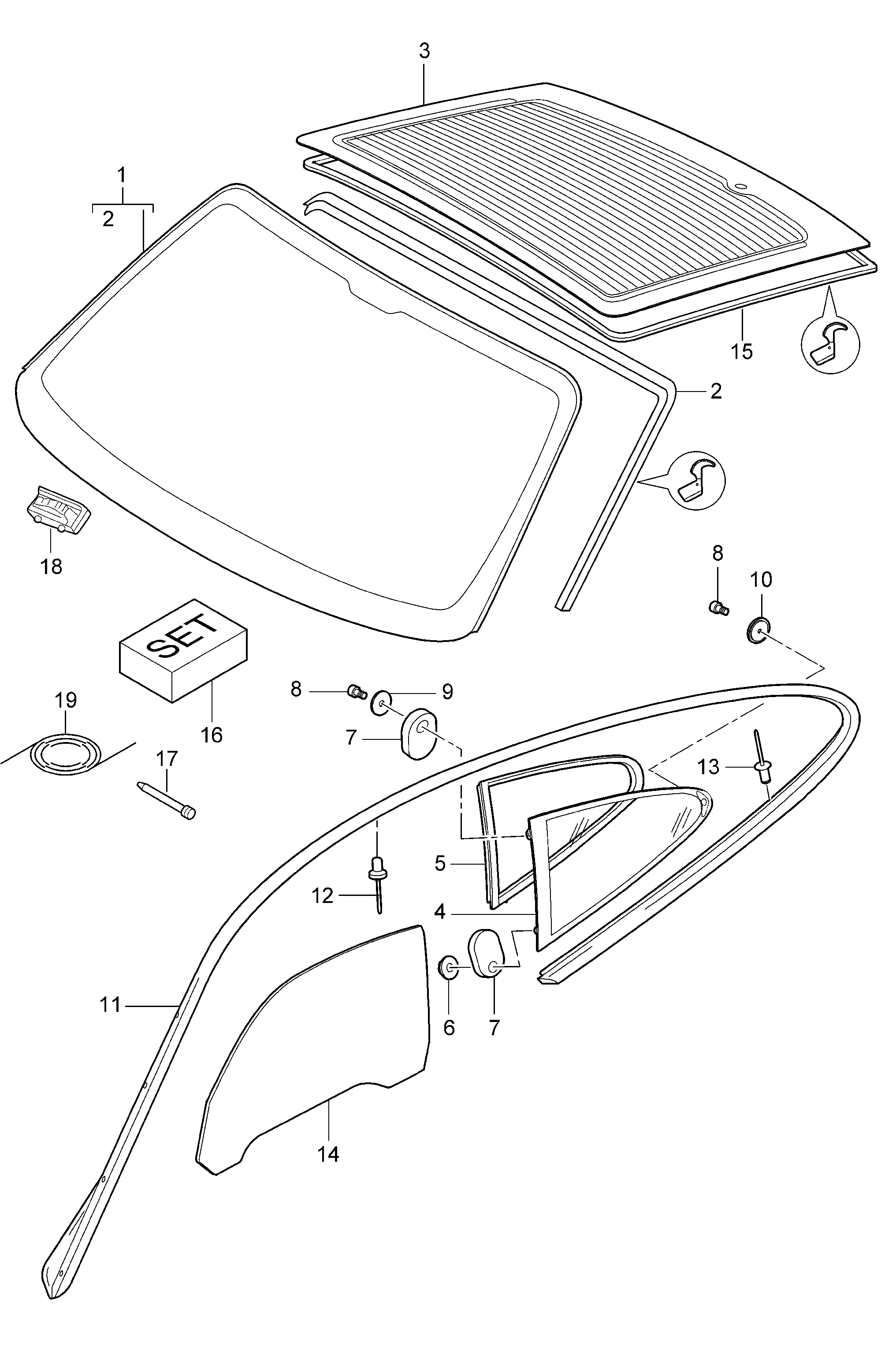 【15】99754590100 Wthstp, for back window Glass